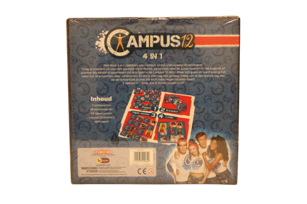 Met deze speldoos van Campus 12 zijn uren speelpret verzekerd! Daag je vrienden uit voor een partijtje triple memo, ga op zoek naar de juiste kaarten in het kwartet of probeer als eerste je spaarkaart vol te krijgen in de Campus 12 lotto. En als je dan nog niet genoeg kreeg van al dat spelen, leg dan de aartsmoeilijke puzzel die toch maar negen stukken heeft. Vier spellen in één doos, dat is vier keer zoveel pret!