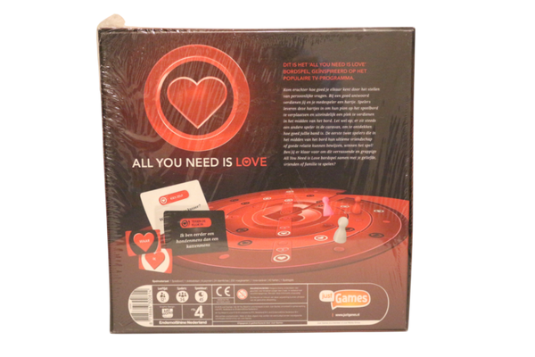 Dit is het ‘ALL YOU NEED IS LOVE’ bordspel, gebaseerd op het populaire tvprogramma. Leer elkaar beter kennen door het stellen van persoonlijke vragen. Bij een goed antwoord verdienen jij en je medespeler een hartje. Spelers gebruiken deze hartjes om een plek te verdienen in het midden van het bord. Let wel op, er zit steeds een andere speler in de liefdes caravan, waarmee jullie vriendschap op de proef wordt gesteld. De eerste twee spelers die in het midden van het bord hun ultieme vriendschap of onbreekbare relatie kunnen bewijzen, winnen het spel! Ben jij in staat om samen dit gezellige en grappige All You Need is Love bordspel te winnen?